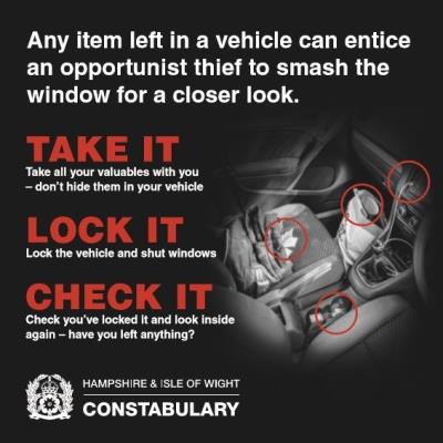 Good Morning, Hedge End Police have received reports of theft from motor vehicles over the last few days. Vehicles are being entered or attempted and items being stolen. We believe these offences are taking place in the early hours. Please ensure vehicles are locked, with valuables and tools removed from vehicles. Keep personal items out of view. Let us know if you have any CCTV, doorbell camera or dash cam footage that may have captured the offenders.