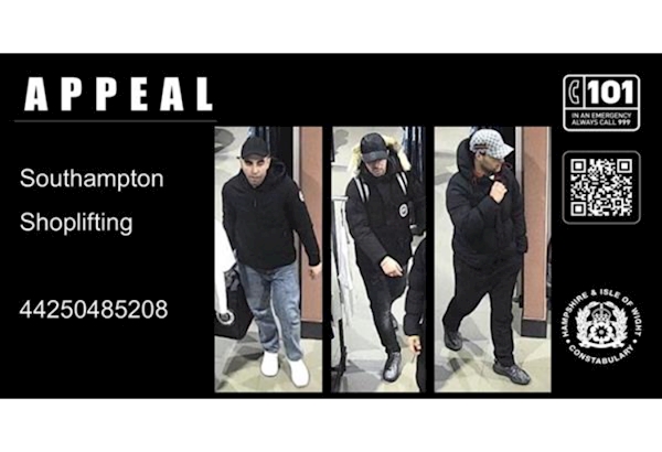 Do you recognise these men? We would like to speak to them in connection with a reported shoplifting from John Lewis, Westquay Shopping Centre, Southampton. During the incident, which occurred between 3.10pm and 3.16pm on Saturday 25 October, it’s reported that six jackets were stolen, worth £2,574. We believe the men in these images can help us with our investigation and would urge them, or anyone who knows their identity, to get in touch with us. The first man we’d like to speak to in connection with this incident is described as; • Aged between 40 and 45 years The second man we’d like to speak to in connection with this incident is described as; • Aged between 30 and 35 years The third man we’d like to speak to in connection with this incident is described as; • Aged between 30 and 35 years If you recognise the pictured individuals, or have any information that could assist our investigation, please contact us. You can do this by calling 101, or by reporting online via the Hampshire & Isle of Wight Constabulary website, quoting incident number 44250485208. How to tell us about an existing case or report | Hampshire and Isle of Wight Constabulary You can also call Crimestoppers, anonymously, on 0800 555 111, or by visiting their website, below; Independent UK charity taking crime information anonymously | Crimestoppers